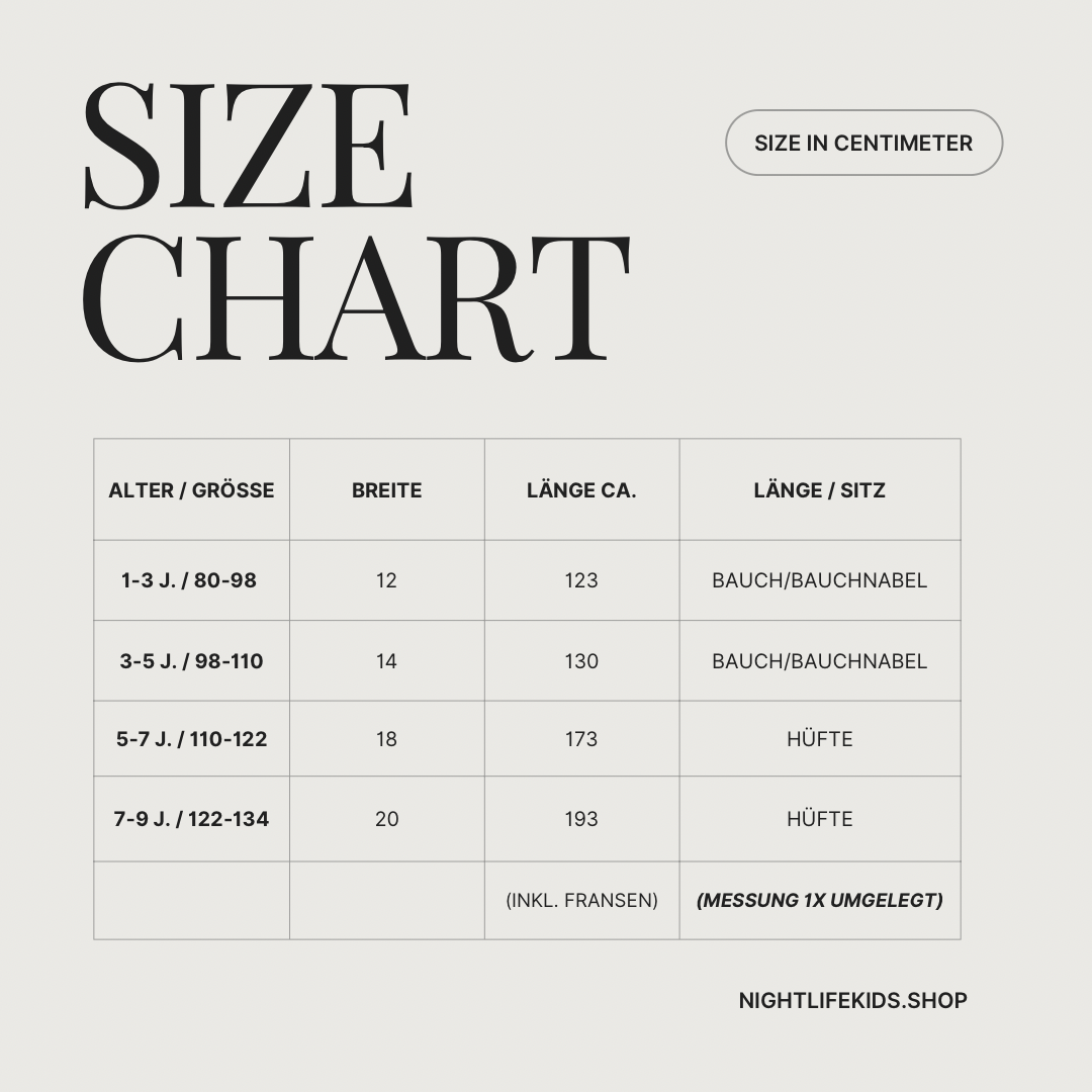 - Bitte achte darauf, dass sich dein Kind beim Spielen, Klettern oder Toben nicht in Fransen oder Maschen verfangen kann.