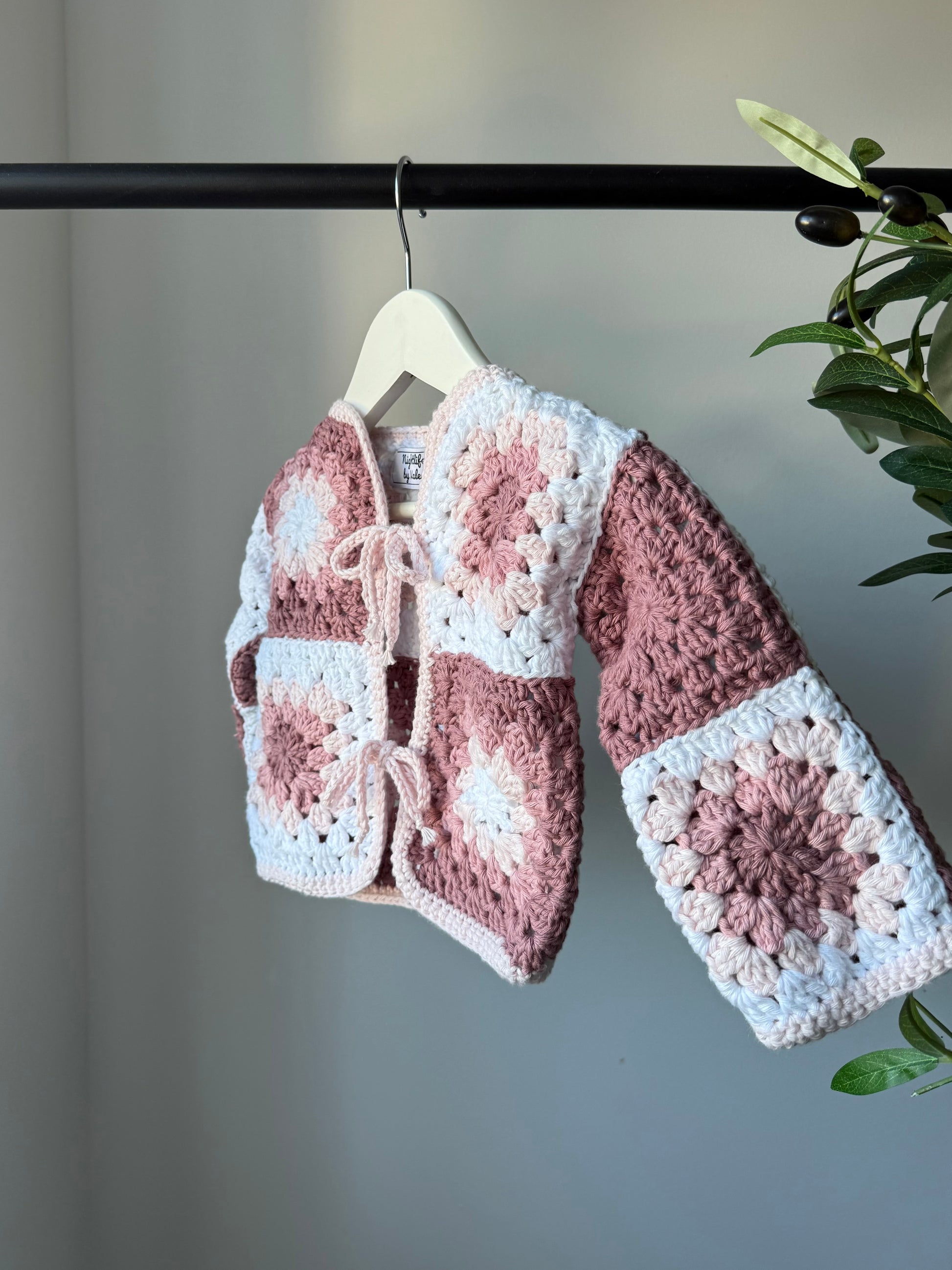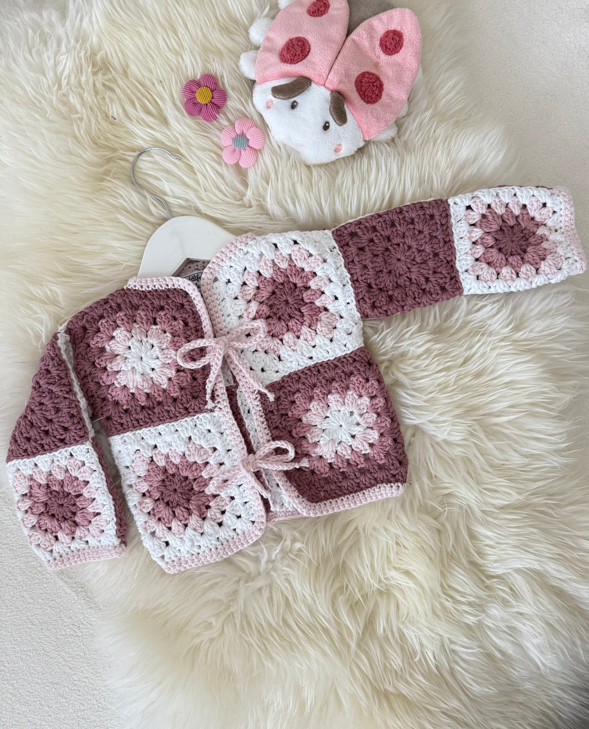 Diese süße Häkeljacke wurde in liebevoller Handarbeit gefertigt und besteht aus weichem, hochwertigen Garn. Die harmonischen Farben in Rosa, Antique Rosé, Weiß und Mauve machen sie zu einem echten Hingucker deines Babys.